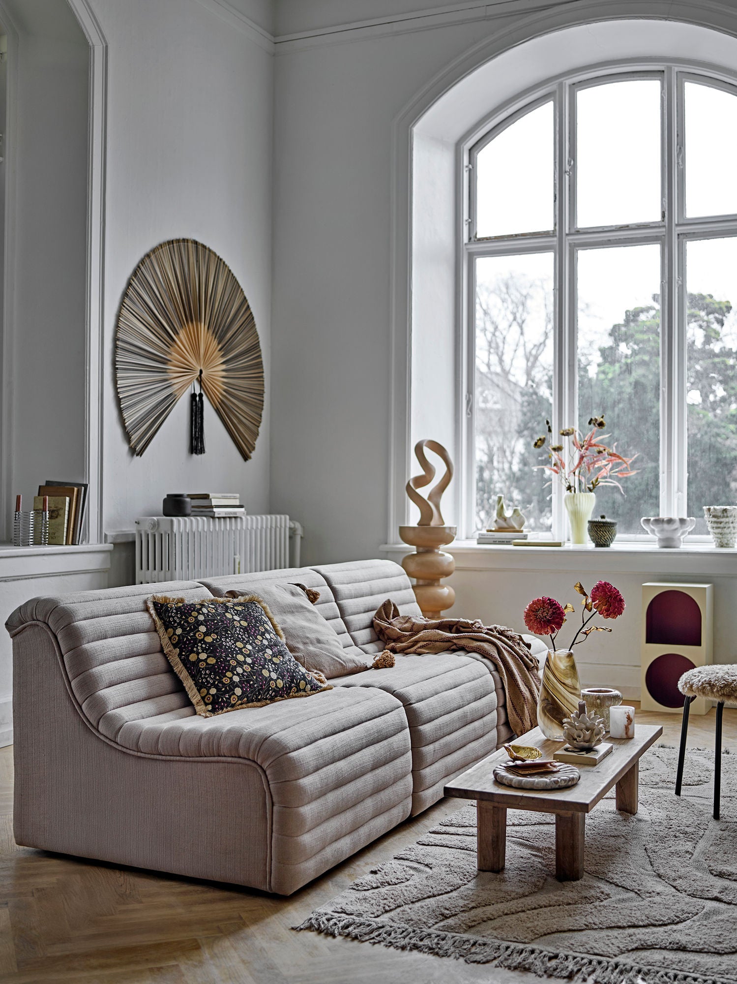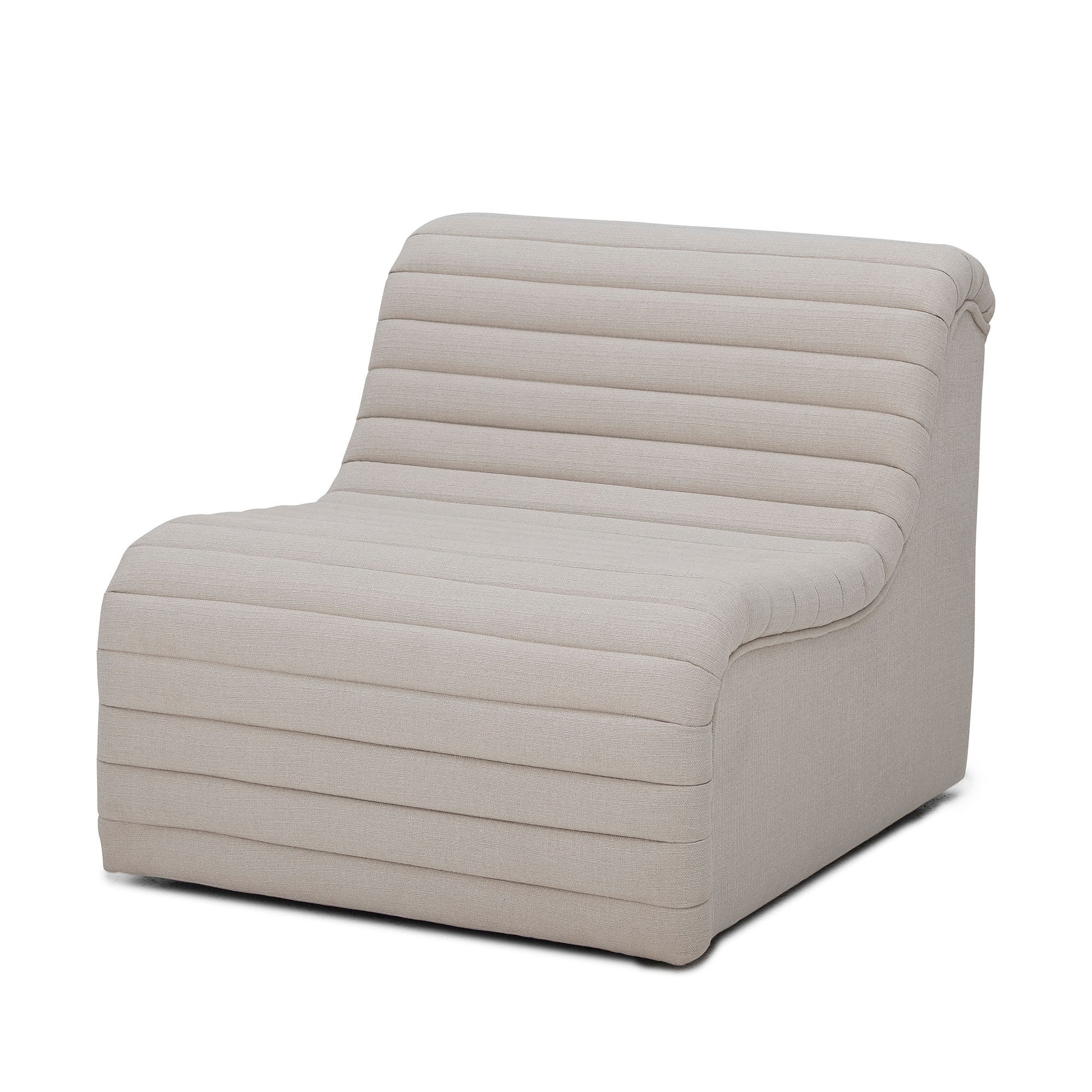 Brug Allure loungestolen alene som komfortabel siddeplads, eller stil 2–3 sammen som en lille sofa og pynt med dine yndlingspuder og plaider for et indbydende og personligt udtryk. Den naturlige farve og det bløde polyesterstof gør den nem at integrere i forskellige indretningsstile.