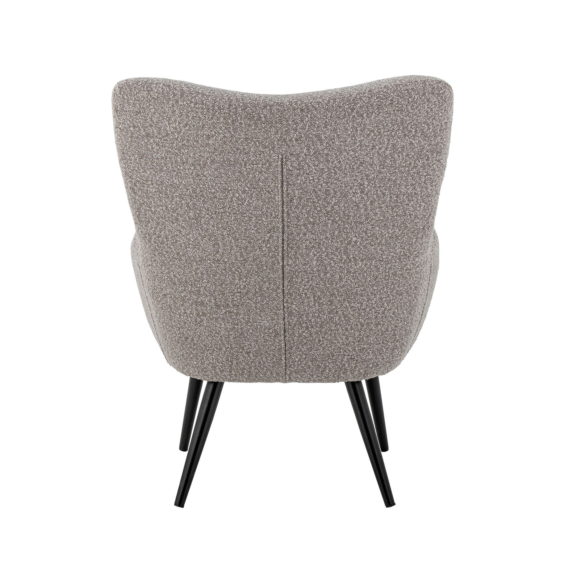 Perry Loungestolen fra Bloomingville kombinerer klassisk design med moderne detaljer. Stolens høje ryg og bløde sæde sikrer optimal komfort, mens det stilfulde grå bouclé-stof og de slanke sorte metalben tilføjer et elegant, nutidigt præg.