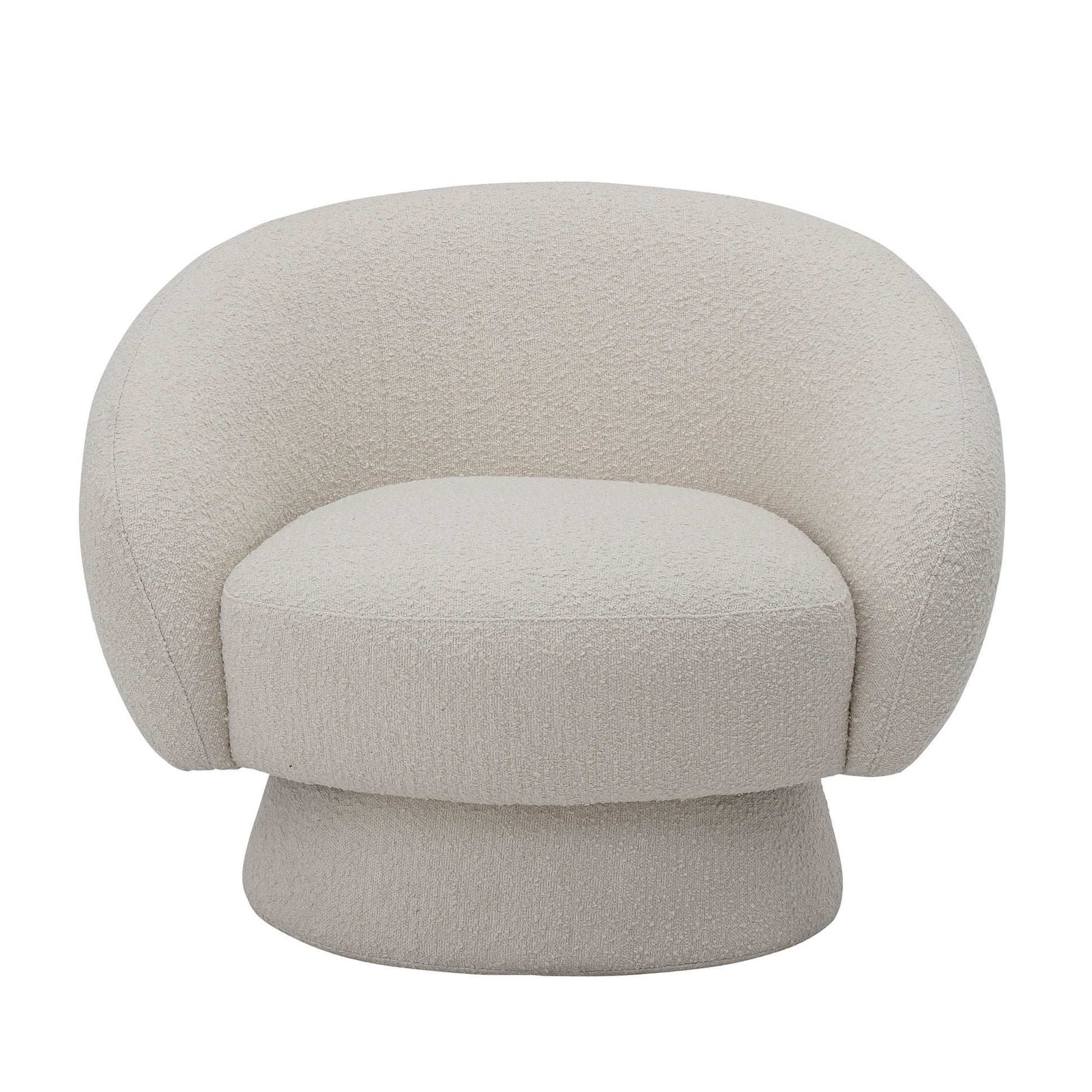Placer Ted Loungestol midt i stuen som en moderne detalje, i et læsehjørne, eller som et stilfuldt element ved siden af sofaen. Den hvide bouclé finish tilføjer lys og elegance til enhver indretning.