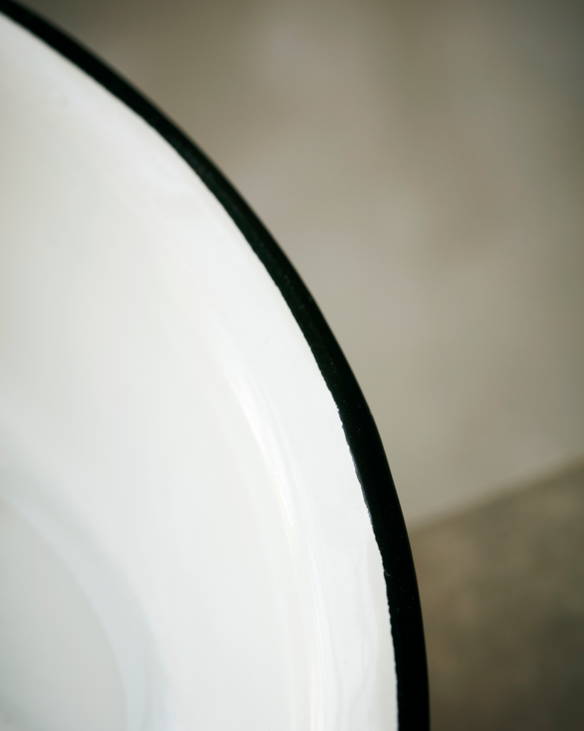Skab en afslappet og hyggelig atmosfære med dette elegante vaskefad fra Meraki. Med sit tidløse og enkle design i hvid med mørk kant, leder det tankerne hen på de gamle badeanstalter og tilføjer et strejf af nostalgisk charme til enhver indretning.