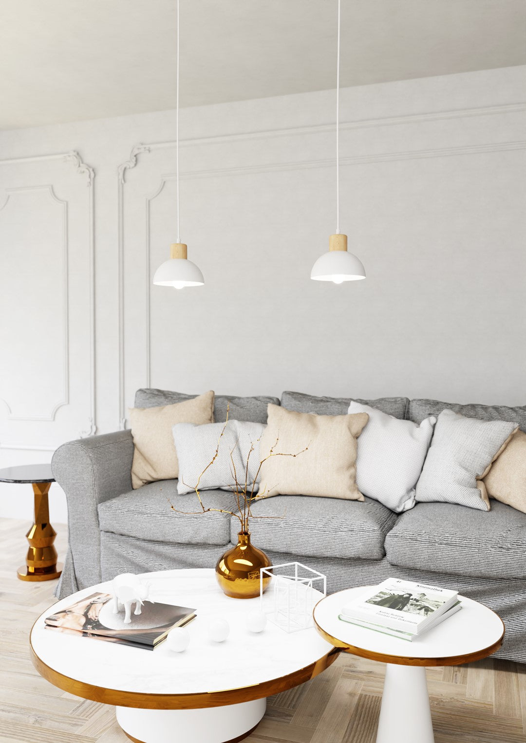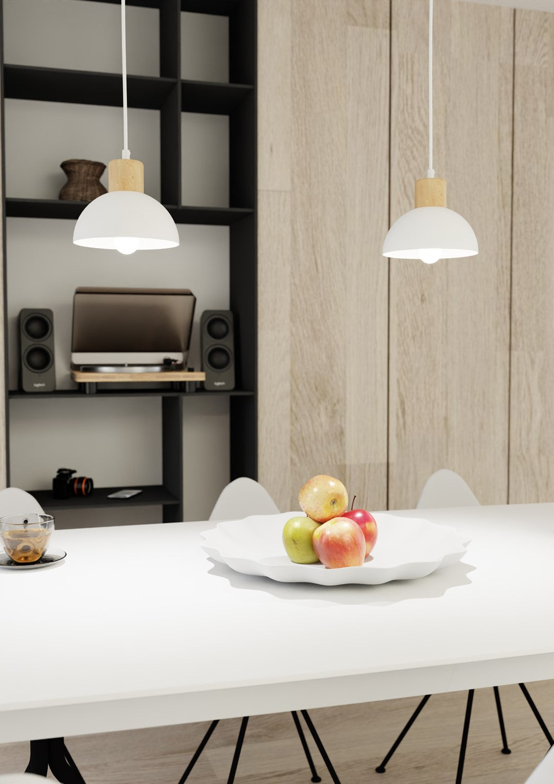 SECO 1 Hvid Pendellampe | Emibig er en stilren loftlampe inspireret af skandinavisk design, hvor enkelhed og naturlige detaljer mødes. Den hvide metalpendel kombineret med fine træelementer skaber en varm og harmonisk atmosfære, perfekt til stue, køkken eller spisestue. Lampen fremhæver minimalistisk elegance med et subtilt naturinspireret touch.