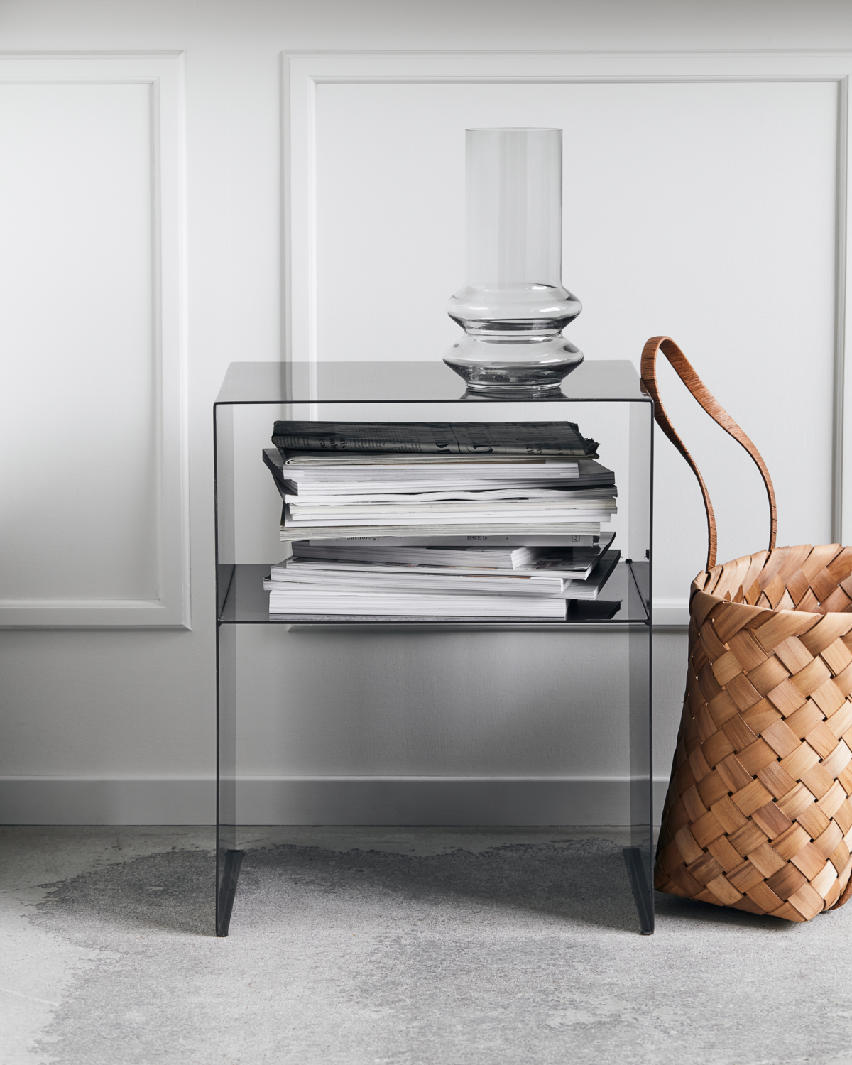 Cool stål, clean-cut linjer og en skinnende sort finish gør Fari fra House Doctor til et stilrent statement i din stue. Den glatte, pulverlakerede overflade og det dobbelte hyldedesign forener funktionalitet og æstetik. Brug det alene som kontrast eller kombiner med resten af Fari-serien for et fuldendt look.