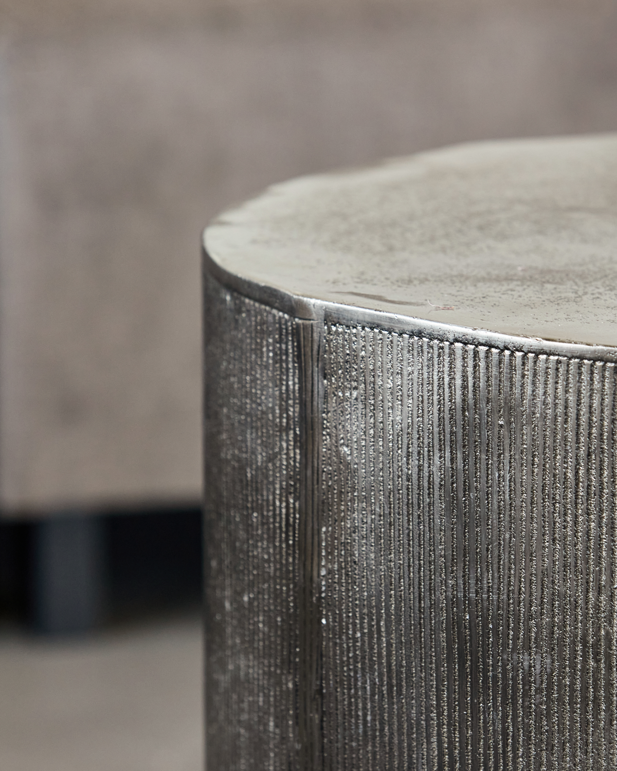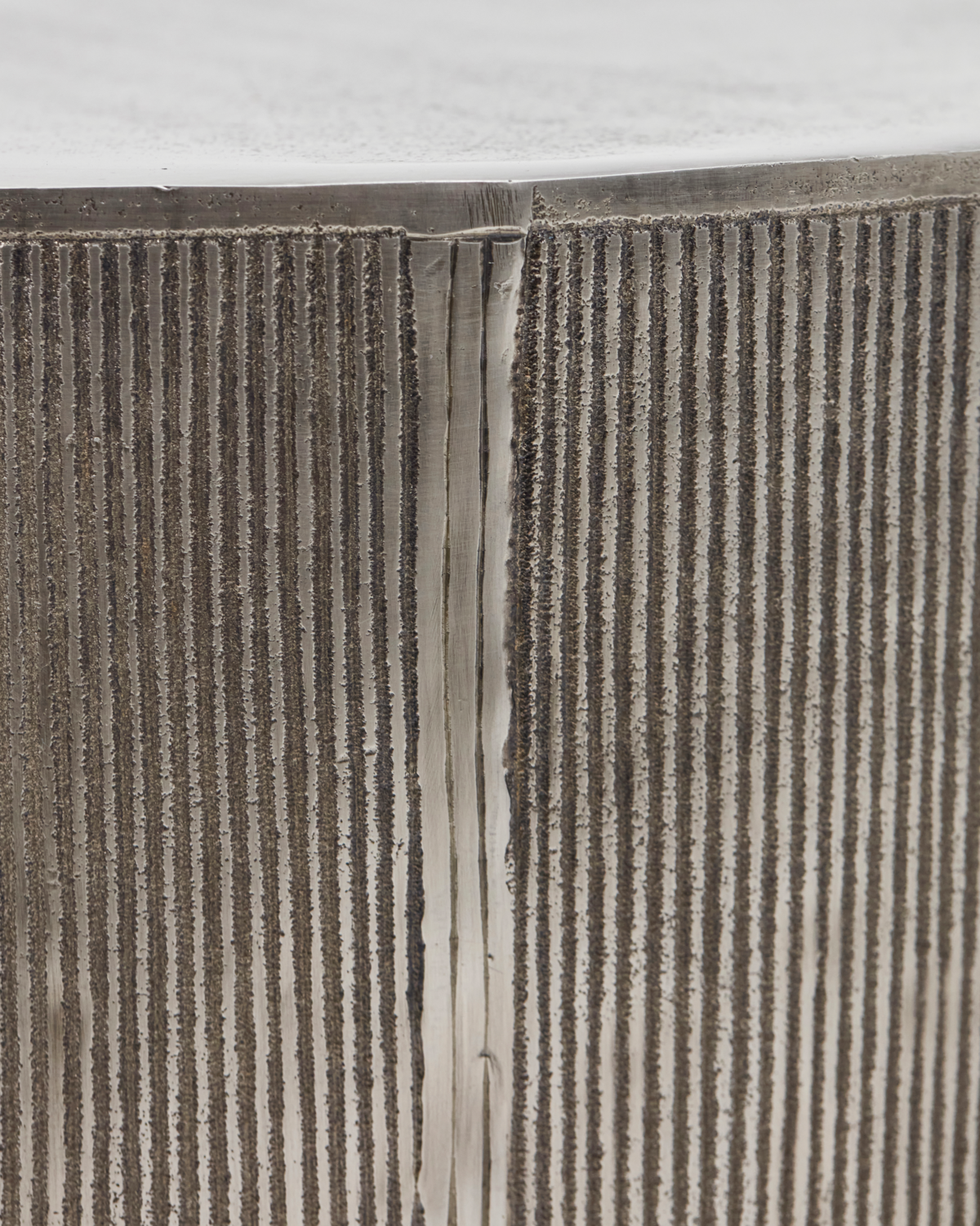 - Råt og elegant design – sølvfinish med dekorative lodrette riller og en unik, struktureret overflade