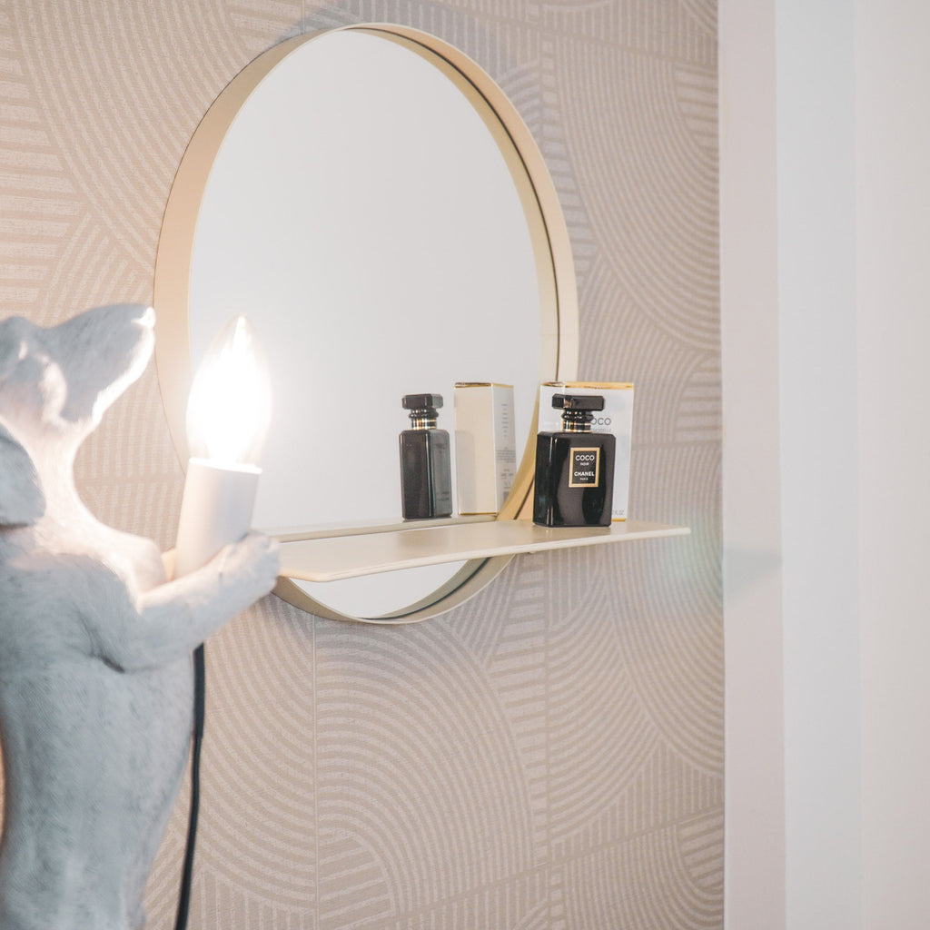 Housevitamin Spejl - Rund - Metal - Med Hylde - Sand- Ø40cm