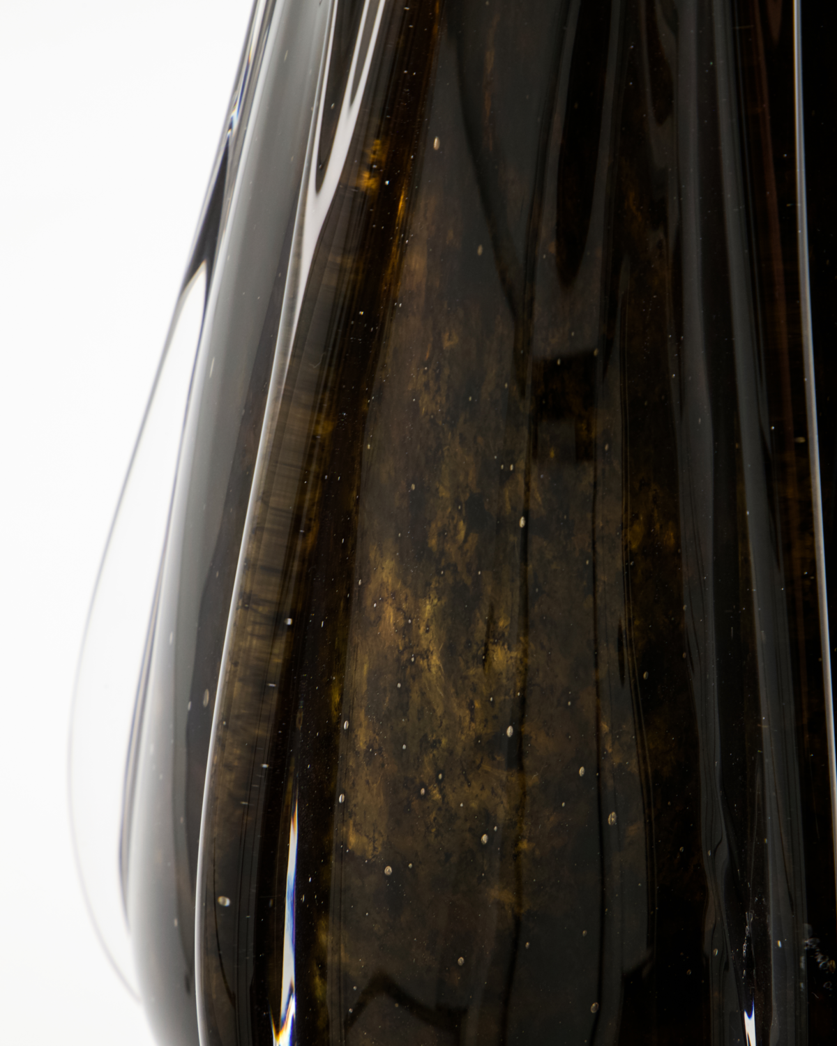 Denne smukke håndlavede vase i mundblæst glas tilføjer et strejf af raffineret elegance til ethvert rum. Den sofistikerede brune farve og den solide vægt gør den til et imponerende element i din indretning, både med blomster og som et stilfuldt dekorativt stykke alene.