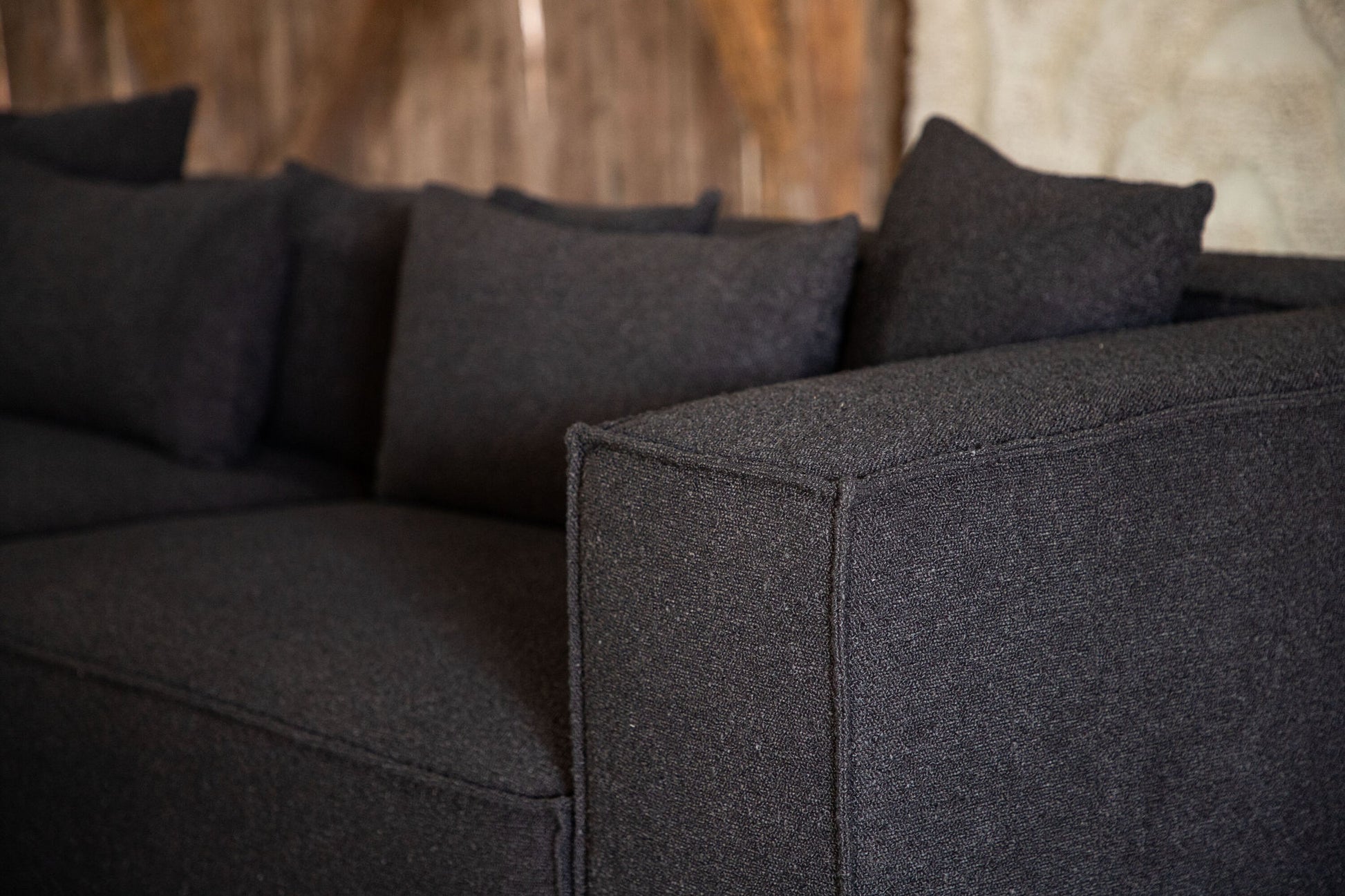 Det sorte bouclébetræk giver sofaen et eksklusivt og tidløst udtryk, samtidig med at stoffets struktur tilfører varme og dybde til indretningen. Gillholmen er designet med ekstra dyb siddeplads og blød polstring, som gør sofaen ideel til lange aftener, afslapning og hyggelige stunder med familie og venner.