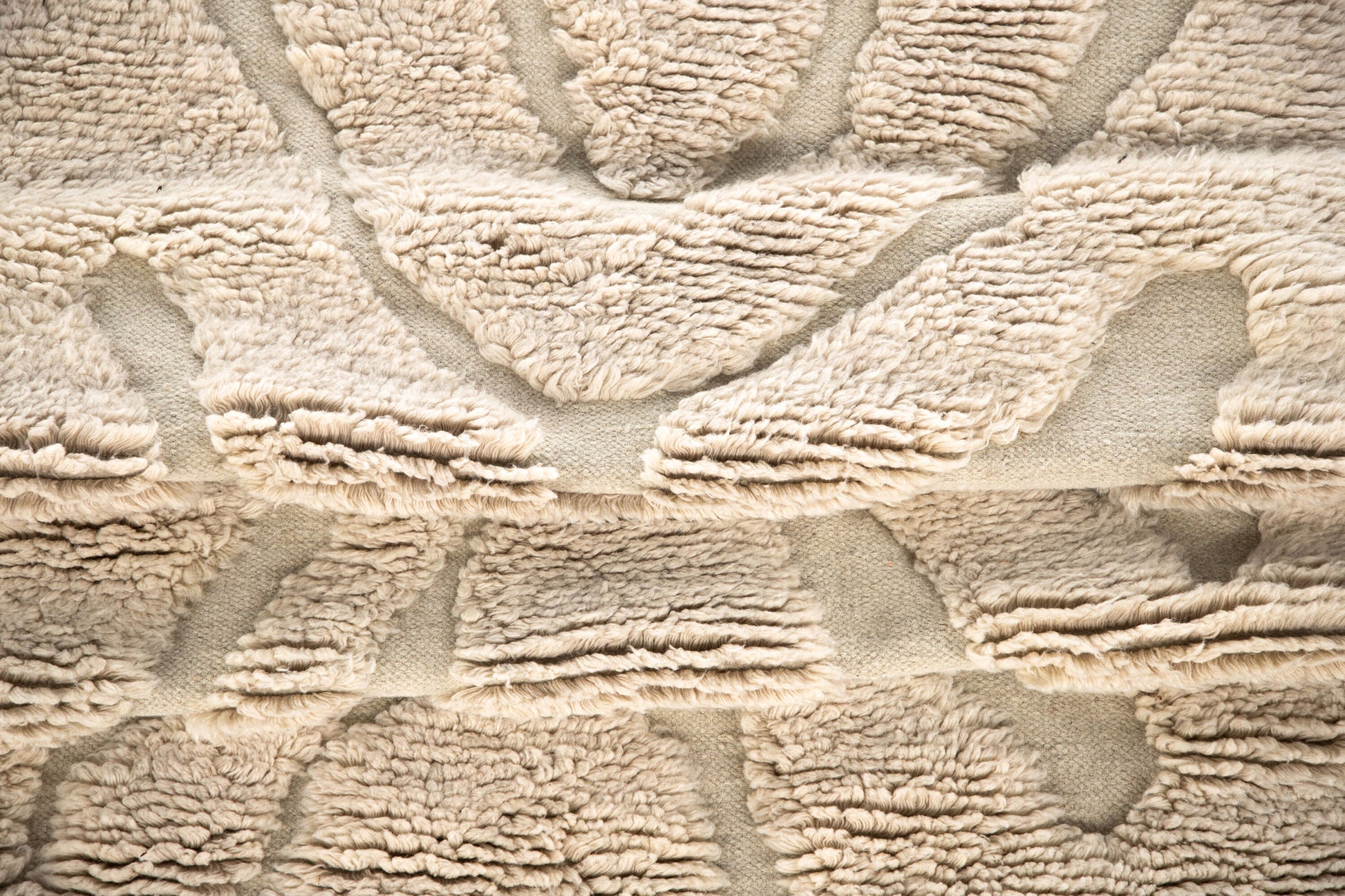 Indret dit hjem med Trondheim-tæppet, et smukt håndvævet bomuldstæppe fra Lustig-kollektionen. Med sin jordfarvede beige bund og varme tuftede mønstre tilfører tæppet både et iøjnefaldende og hyggeligt udtryk til rummet. Den let højere og grovere bunke skaber en lækker dimension og et blødt underlag, som er perfekt til afslapning og komfort.