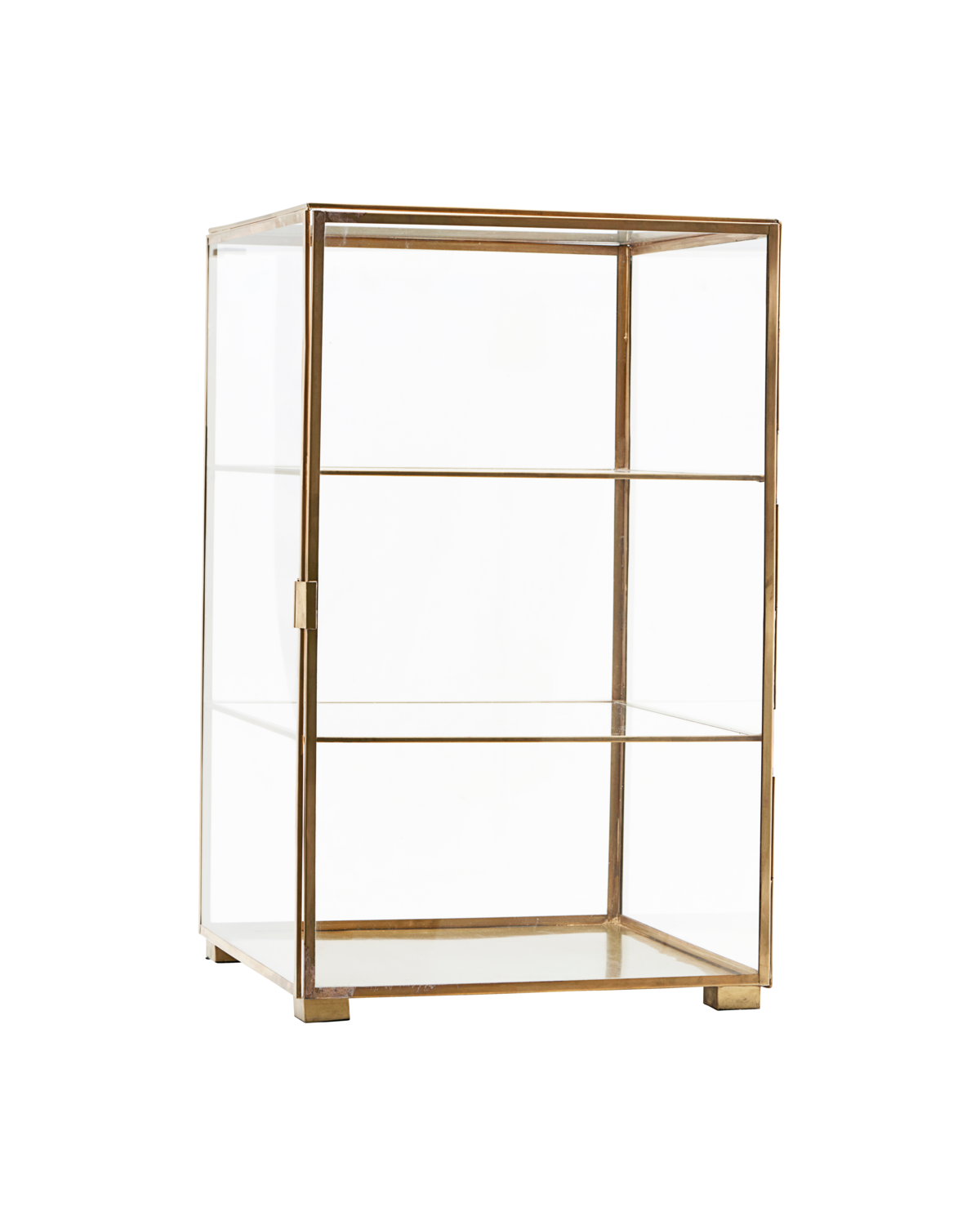 Skab et elegant og personligt udtryk i din indretning med Glass fra House Doctor. Dette fine vægskab i glas og messing kombinerer lethed og luksus og giver dine udvalgte ejendele en smuk ramme. Med to hylder og en glaslåge får du både funktion og æstetik i ét.