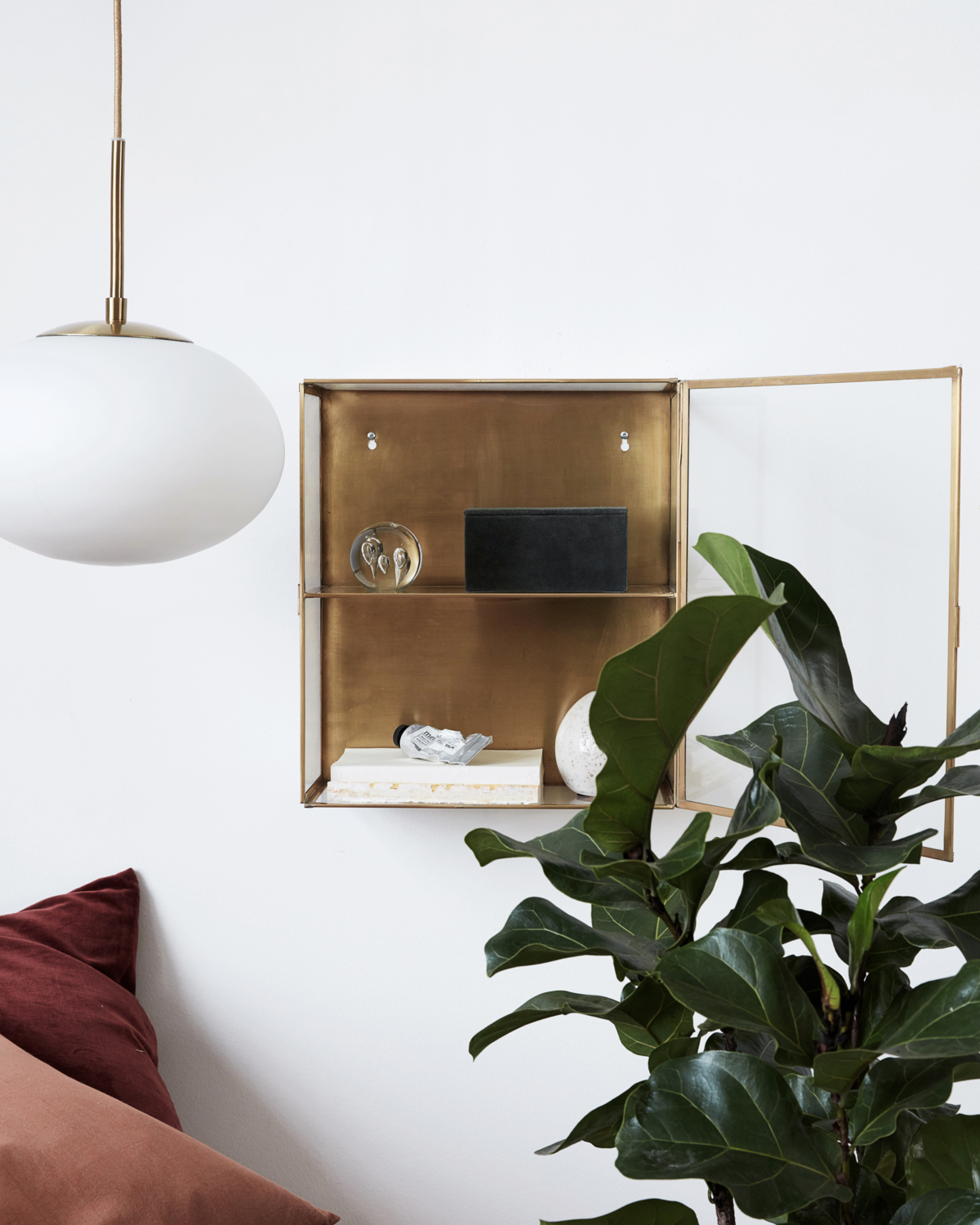 Glass tilføjer et raffineret præg til enhver væg og står i flot kontrast til både moderne og klassiske hjem. Den varme messingfarve gør skabet til et dekorativt element, der skiller sig ud og tilfører personlighed til rummet.
