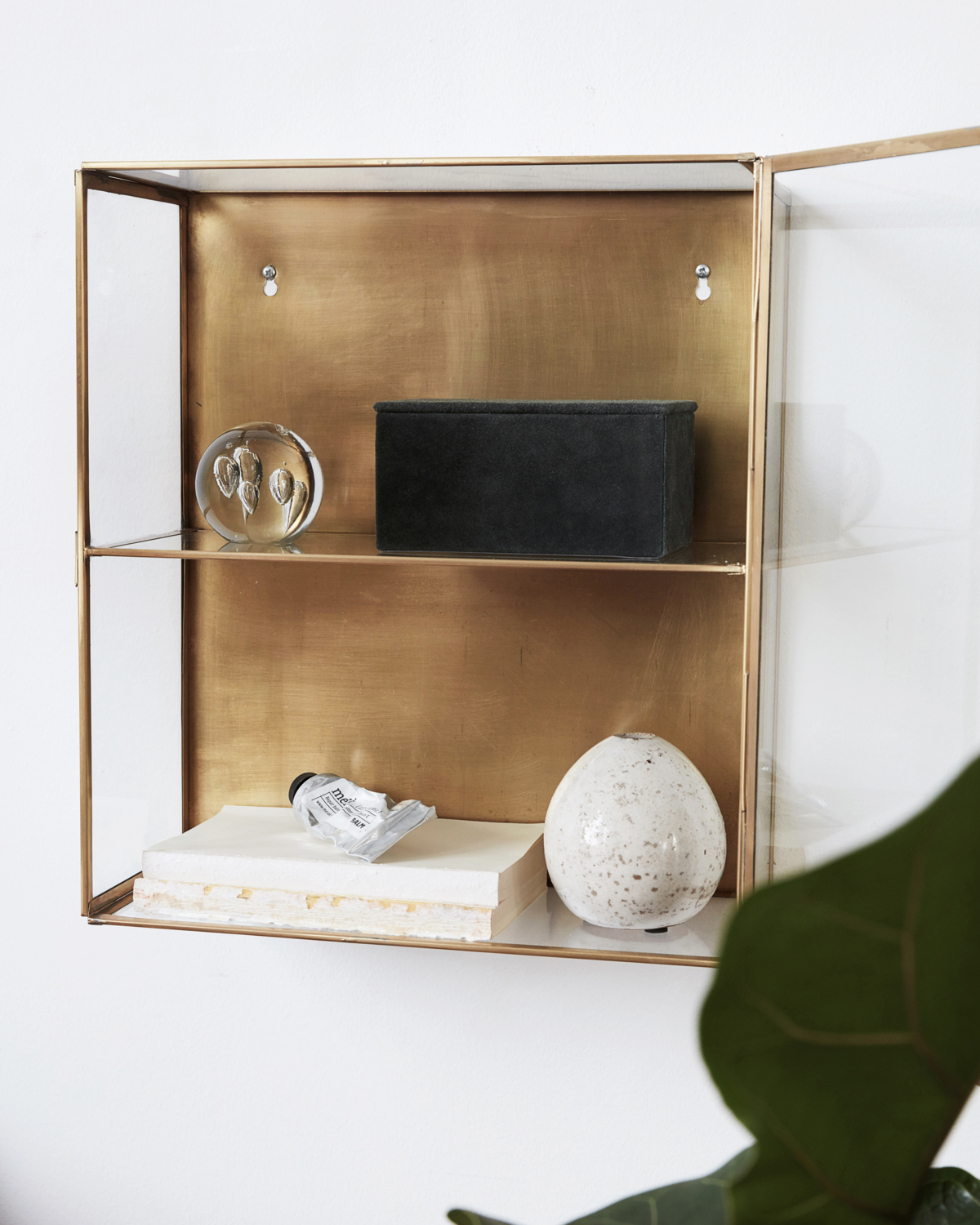 Skab et sofistikeret og personligt udtryk i din indretning med Glass fra House Doctor. Dette vægskab i glas og messing forener funktion og æstetik på smukkeste vis. Den elegante glaslåge og messingbaggrund fremhæver dine personlige ejendele, og de tre hylder giver rig mulighed for at udstille dine favoritter – fra krydderurter og vinglas i køkkenet til smykker og små nipsting i stuen.